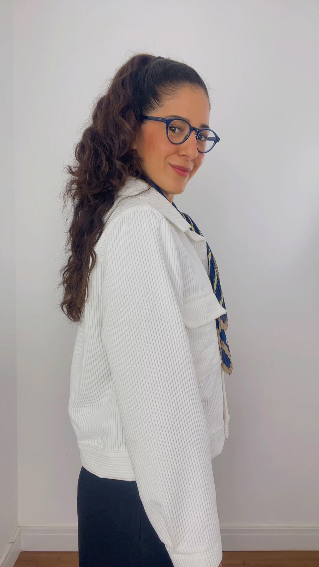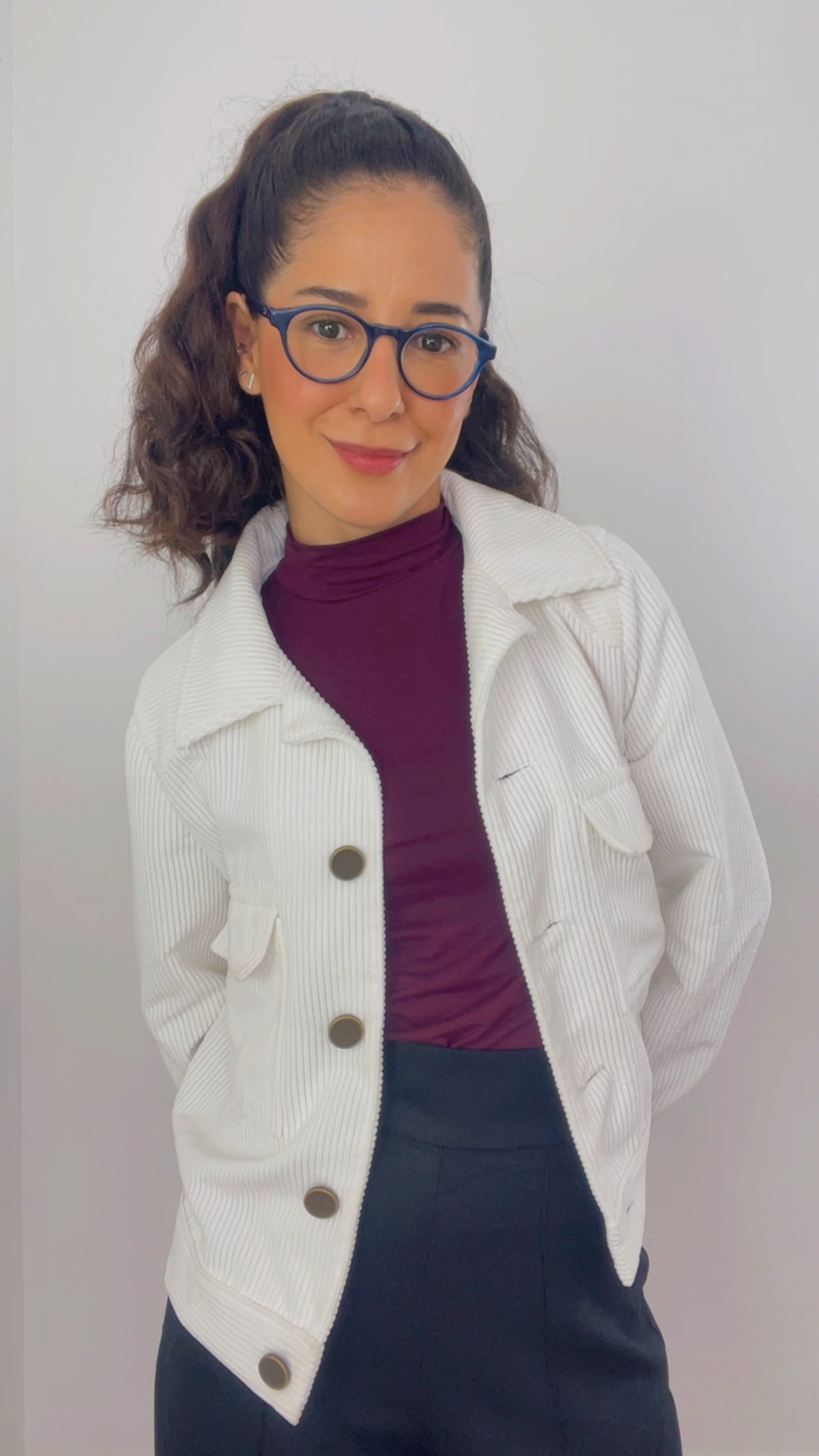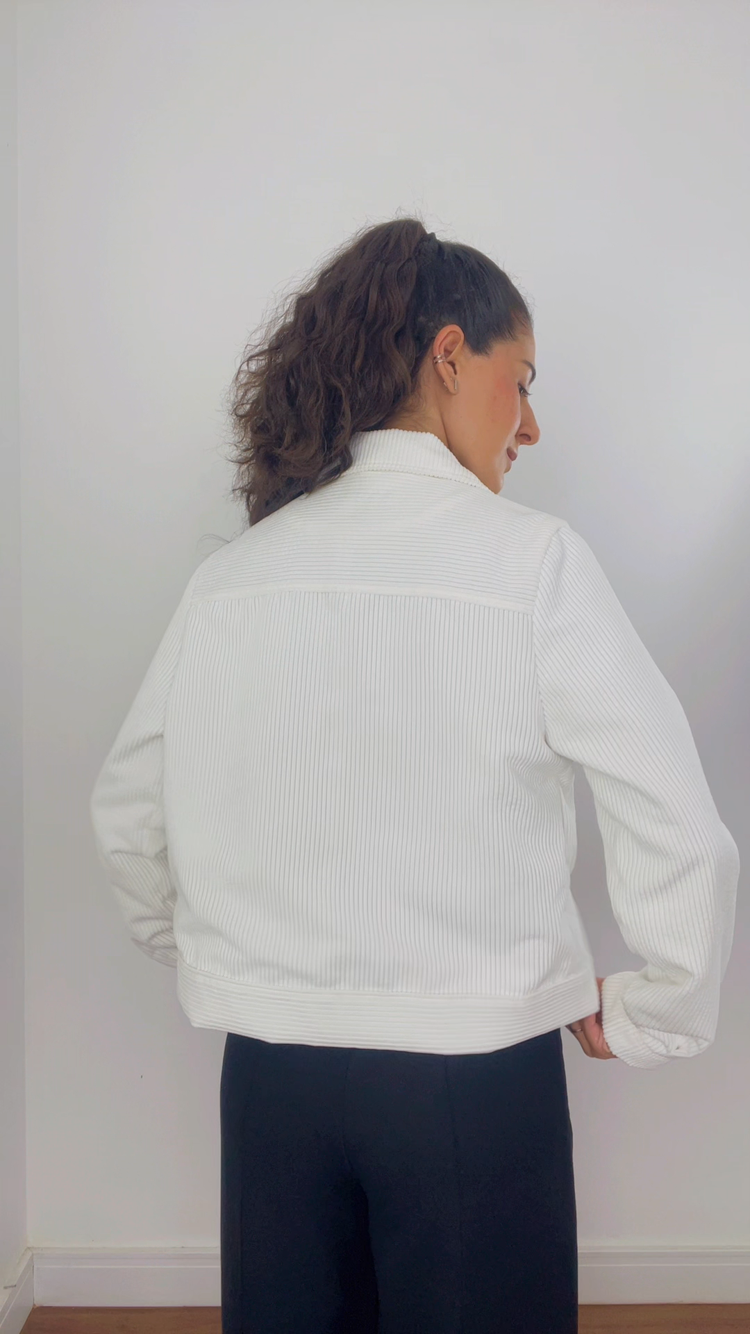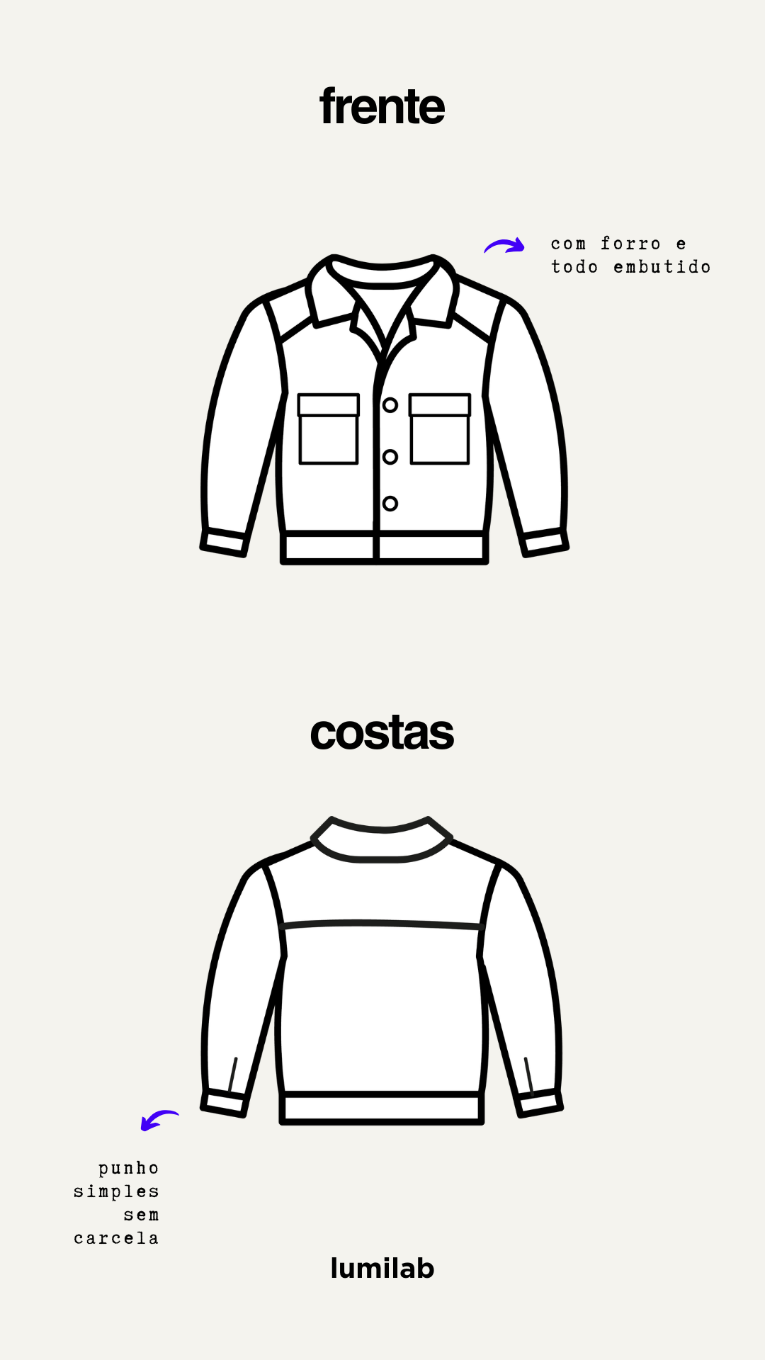 Molde do modelo de jaqueta AMORA, para impressão em folhas A4 com aula de costura.