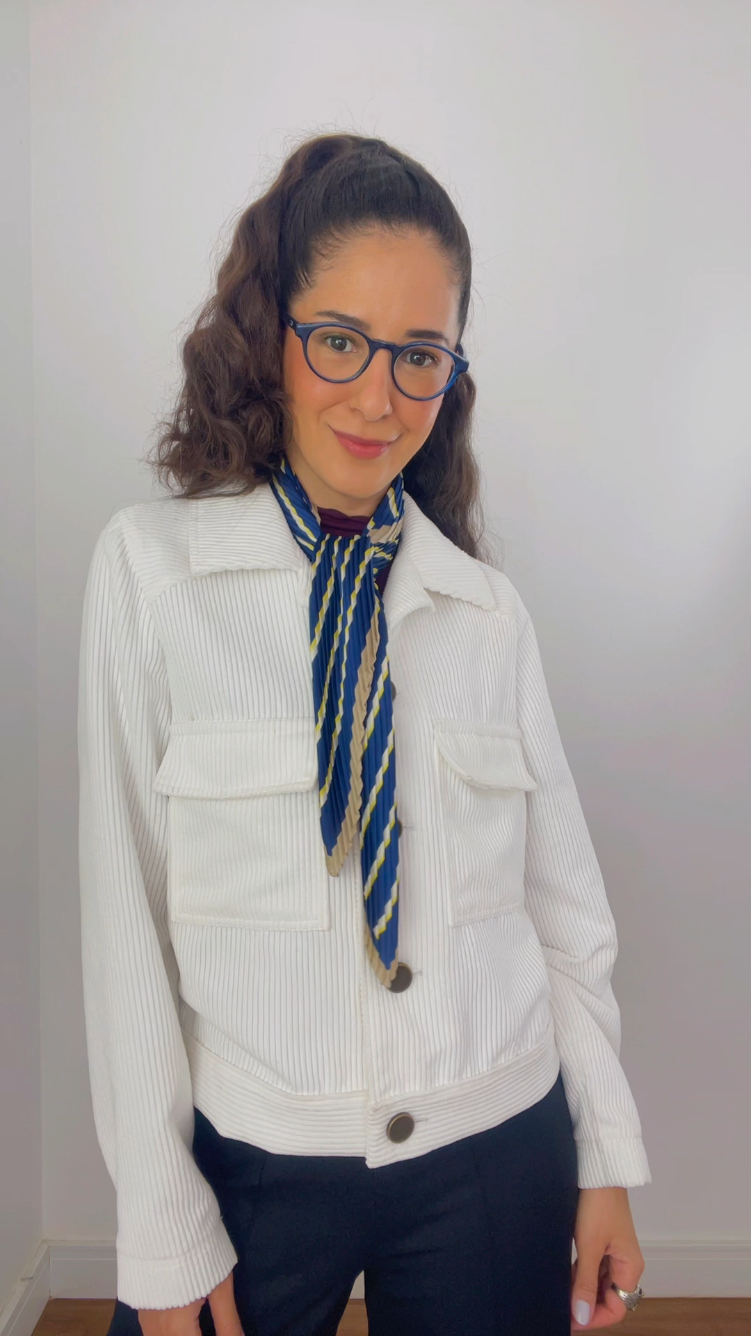 Para forro, pode ser usado tecidos de forro em poliéster, como o bemberg (que tem uma qualidade normalmente inferior, pois ele é fino) e o forro jacquard de poliéster (muito usado em alfaiataria masculina). Se você quiser conforto térmico, a própria tricoline de camisaria de algodão é uma boa opção, pois como a jaqueta é encorpada, o forro nesse tecido irá fazer uma boa composição.