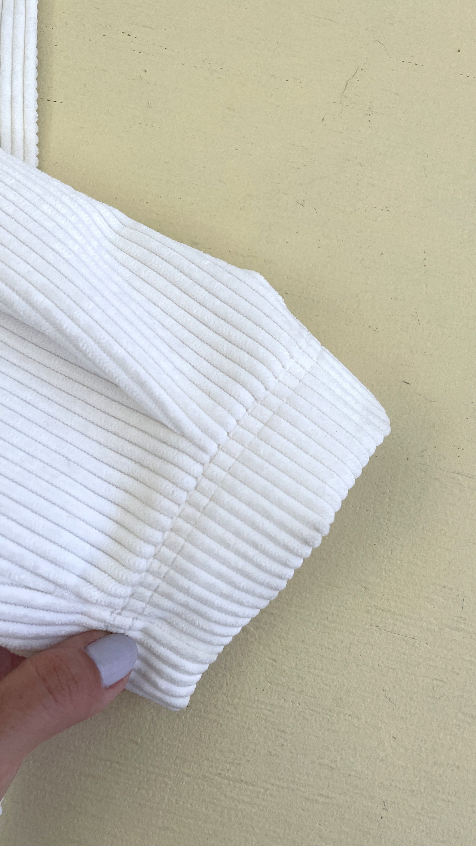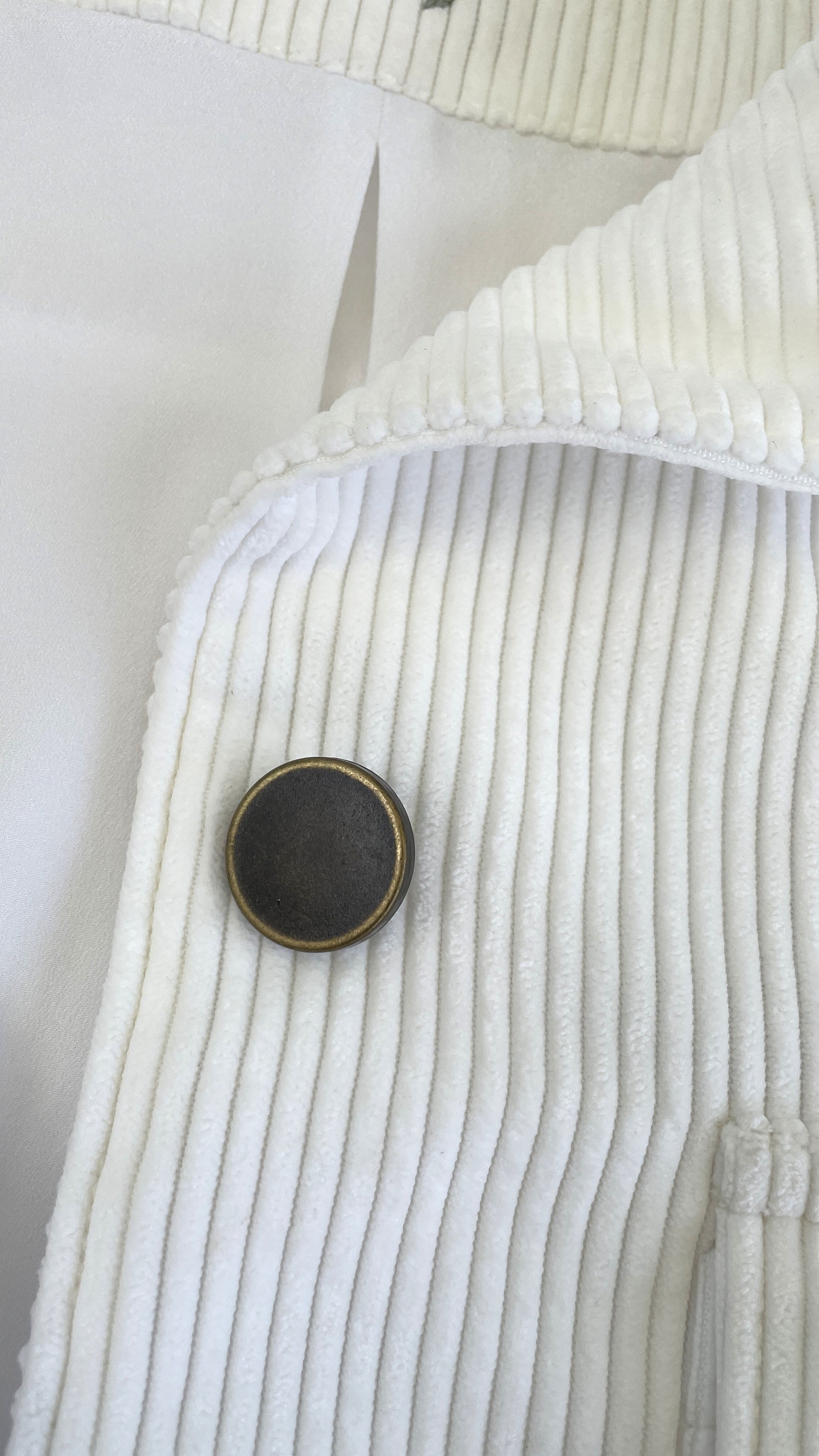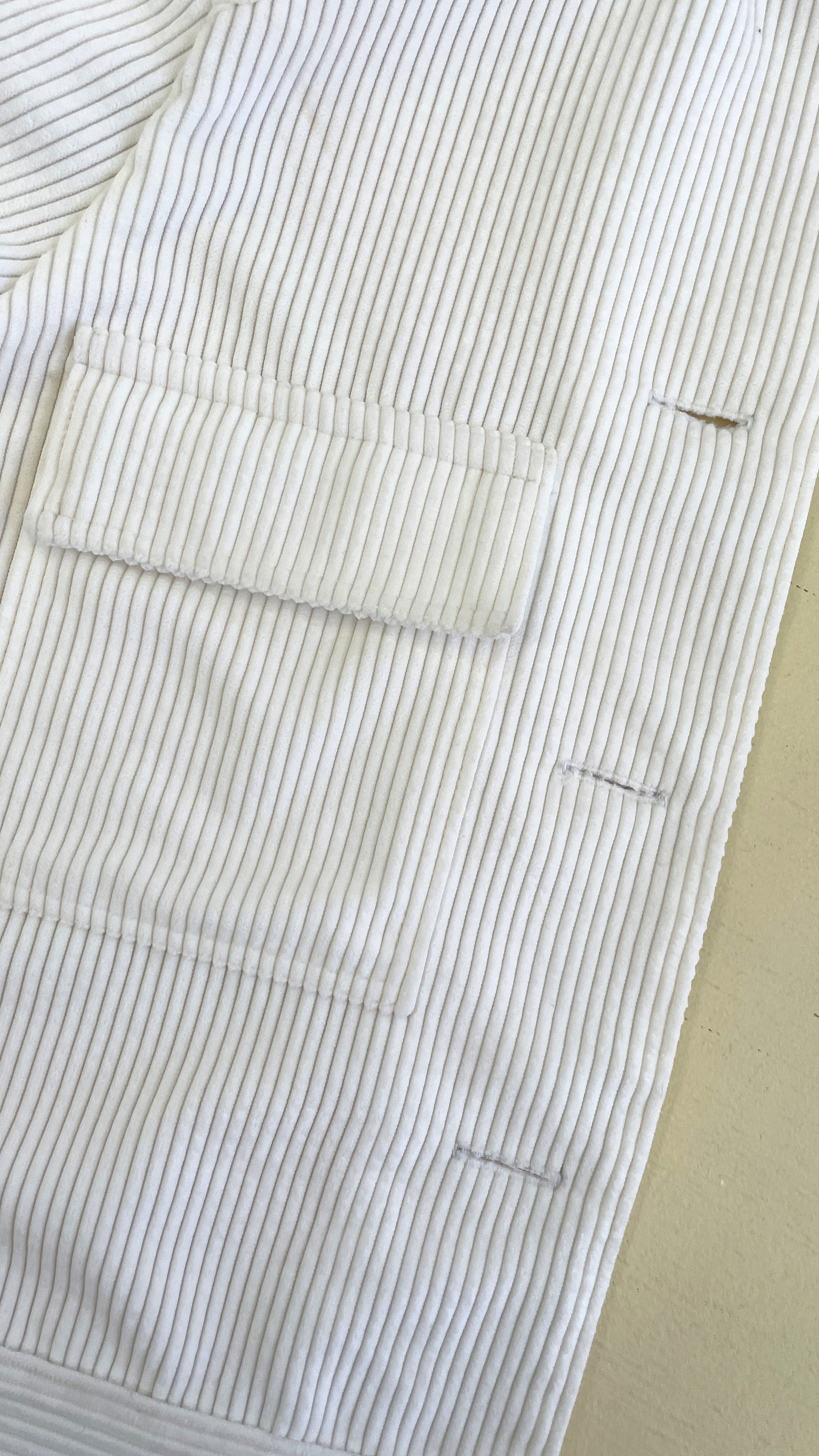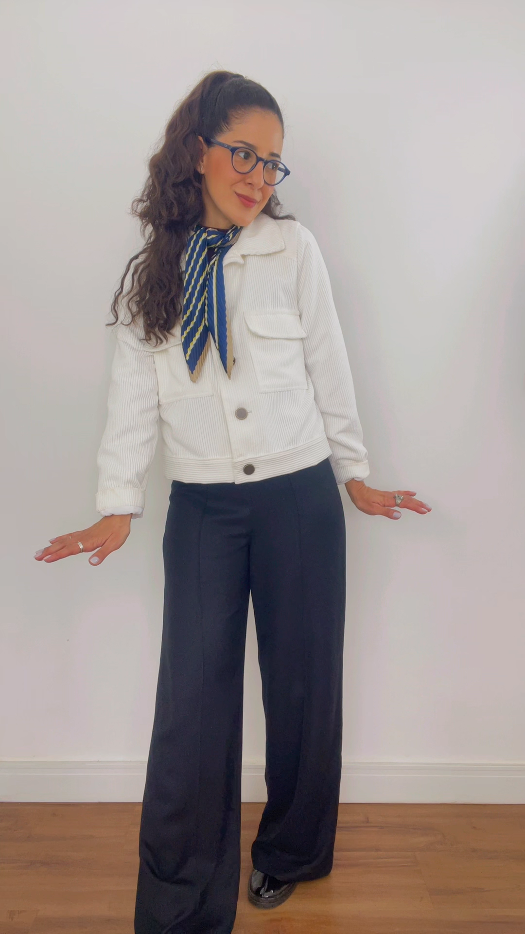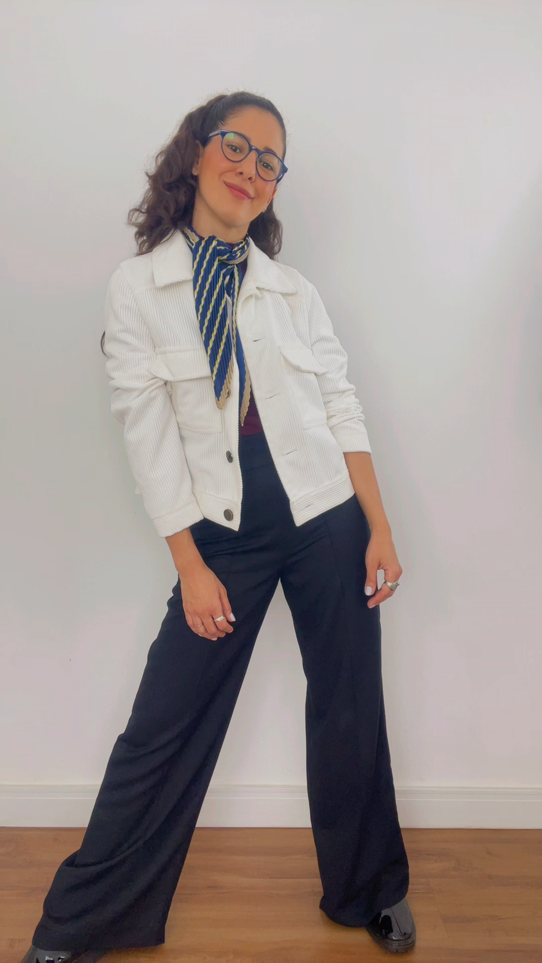 Tecidos planos encorpados como sarja, veludo cotelê, tweed, bouclé, jacquard.
