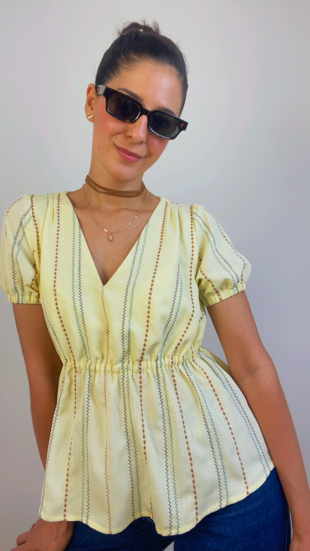 Tecidos planos leves a médios com bom caimento: cambraia e tricoline finas de algodão, laise, crepe (rayon ou poliéster), viscose, musseline (com forro, se usar). Para resultado mais estruturado, pode usar linho leve ou crepe de gramatura média (≈ 170–220 g/m²).
